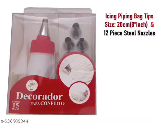Name : 12 Piece Cake Decorating Set Frosting Icing Piping Bag Tips with Steel nozzles. Reusable & Washable.