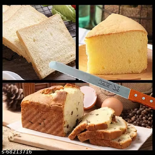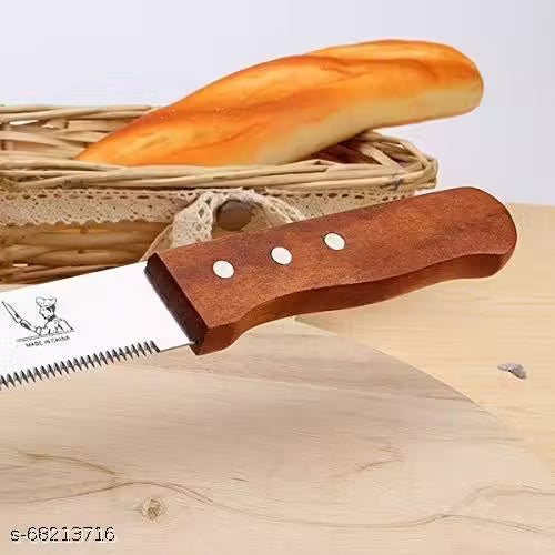 Name : AL ATASH 14 Inch Bread Knife | Wide Teeth Wooden Handle | Stainless Steel Cake Slicer Multi-Purpose | for Cutting Crusty Breads | Dining and Vegetable Chopping - Pack of 1