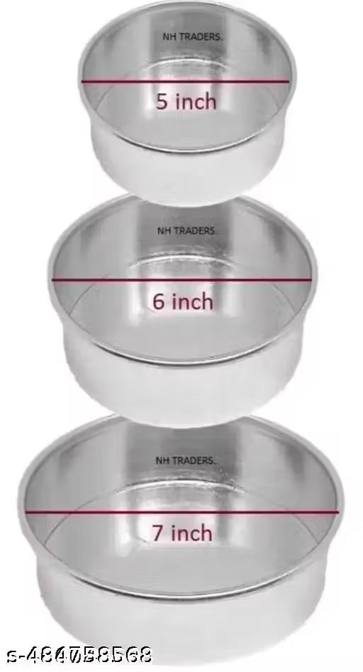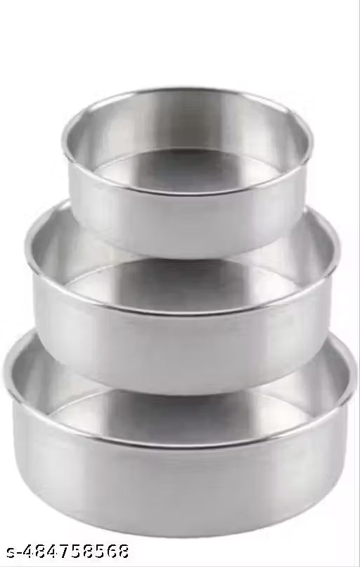A grade aluminium made bake ware product cake mould 5,6,7 inchs with glocy finish easy to make cake in it set of 3 in silver