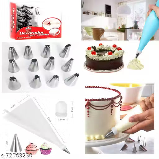 Name : Cake making Icing Nozzles Set of 12 Cake Decoration Pastry Nozzle with Coupler and Icing Bag...2) PLASTIC PIPING BAG(10 PIECE)(FREE)