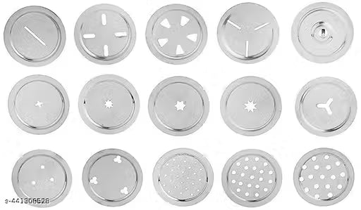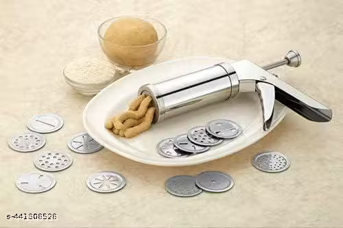 Name : CAPTIP Stainless Steel Kitchen Press with 15 Different Types of Jalies, Murukku Maker/Bhujiya Maker/Noodles/Cookies/Namkeen/Chakali Maker/Sev Maker/Farsan Maker/Gathiya Maker (Silver)