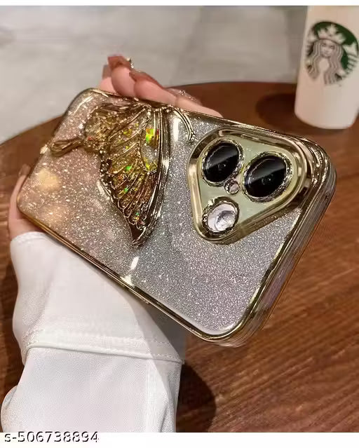 Name : Creativo Designed for Apple iPhone 16 Cover with Luxury Glitter Cute Butterfly Plating Design Aesthetic Women Teen Girls Back Cover Case (Gold)