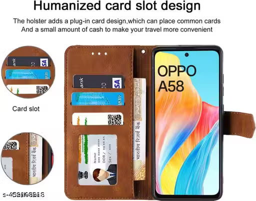 Name : Flip Cover OPPO A38 4G Compatible for OPPO A38 4G Stylish Designer Trendy Girls Cover Artificial Leather Printed Flip Cover for OPPO A38 4G Flip Cover Executive Brown, Magnetic Closure