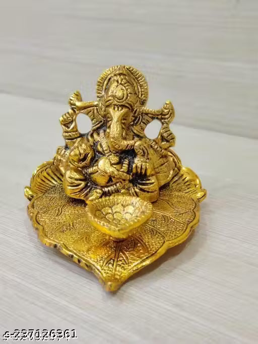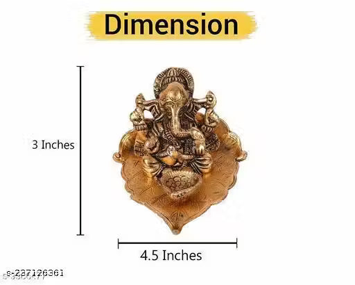 Name : Ganesh Sitting On Pipal Leaf With Diya Metal Statue Home/Office/Decoration/Gifting Item Decorative Showpiece - 12 cm (Metal, Gold