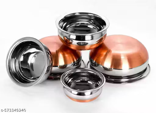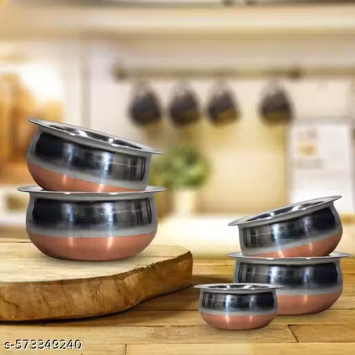 Name : GEATNYWAY Stainless Steel Copper Bottom 5 Pic Handi Pot Set,Vegetable Bowl ,Cooking Dinner Table Serving Biryani Pot Handi Kadhai