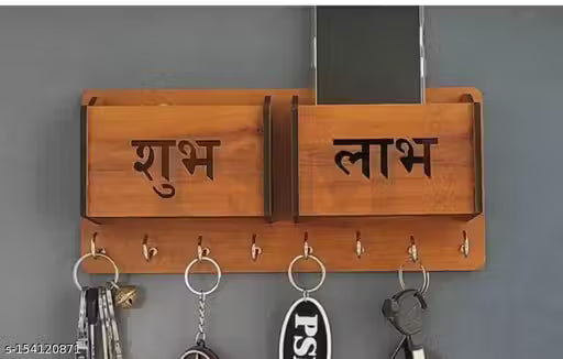 Name : GLOBAL DECOR Subh LabH 8 Hooks Premium Wooden Keys Stand for Entryway, Kitchen, Office, Mudroom Wall, Mount Decorative Keys Organizer Key Holder (Subh Labh Stand)