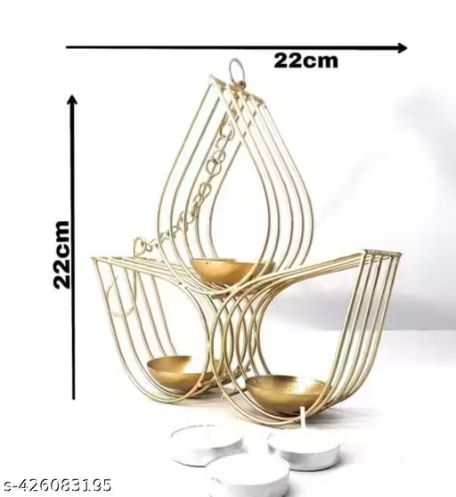 Name : Golden Metal Tea Light Candle Holder | Decorative Diya Stand for Home & Festival Decoration