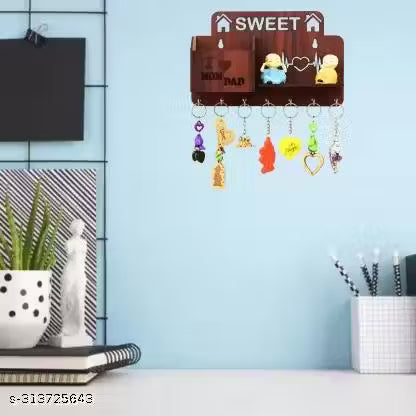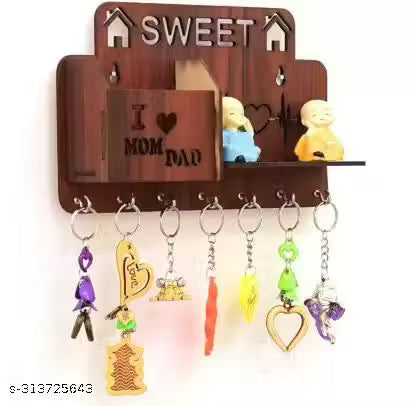 Home Sweet Home / Sweet / I love Mom Dad / Key holder / Home Decore Wood Key Holder (7 Hooks, Brown)