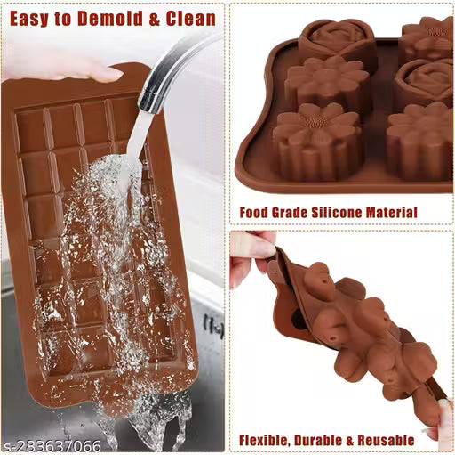 Chocolate Molds with Different Shapes - We select 4 pack silicone molds with different classic patterns for you heart shape, star shape, 51 letter shape, break-apart chocolate shape and which is enough for your daily using.