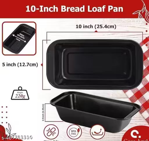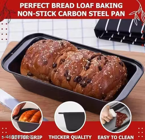 Loaf cake Mould Use For akes, pies, bread, brownies, lasagna, omelet, meatloaf, meatballs, tiramisu, cookie, square cake, carrot cake, quiche, chicken pot pie, bruschetta, ribs, enchiladas, biscotti, cornbread, loaf bread, banana bread, baklava, potato, pot roast, turkey roasting and much more. | Non-STICK COATING FOR EASY RELEASE : - Commercial I LAG Technolog Non-stick Bakeware features an exclusive grade of dual-layer, diamond-quality nonstick finish. | BAKEWARE FEATURES:- Heavy-Duty Steel Rolled-Rim Bakeware construction provides years of long-lasting, warp-resistant baking performance. | Use For All Occasions : MAFAHH loaf pan are great for make high quality family dishes, afternoon tea, banquet desserts and other delicacies, good for daily cooking, family dinner, friends gathering, festival celebrations, etc. | Package Content - 1 Pcs Loaf Pan | Color: Black | Material: Carbon Steel | Size : 25 cm | Easy to clean | Finish Type: Non-stick coating