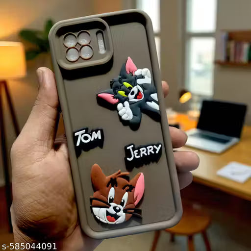 OPPO F17 back Cover | Glitter Back Cover Tom & Jerry Cover Pattern Stylish Phone Case 3D Fancy Crystal Design for girl & women, Anti Slip Drop Protective Slim Safety Soft Black Marble Case OPPO F17