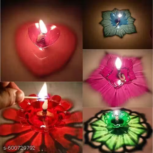 Name : Pack of 24 Culture Crafts™ Multicolour 3D Reflection Reusable Designer Diwali Oil Diya Combo Made with High Quality Transparent Plastic for Dipawali and Home Decoratin - With 24 Wicks(Bati)/diwali diya/water diya/decor