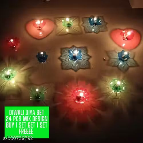 Name : Pack of 24 Culture Crafts™ Multicolour 3D Reflection Reusable Designer Diwali Oil Diya Combo Made with High Quality Transparent Plastic for Dipawali and Home Decoratin - With 24 Wicks(Bati)/diwali diya/water diya/decor