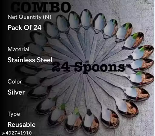 Name : Premium Quality Stainless Steel Spoons, Set of 24, PCS, (16cm L), great utility, >Combo offer contains 24 pc stainless steel spoons. >Spoons made from Food Grade High Quality Stainless Steel