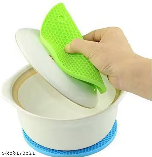 Silicone Round Scald Proof, Heat Resistant Non-Slip Pot Food Placemat These Place mat Silicone body are easy for grip and safe handling. Twists and bends for proper grip and perfect for repeated tasks.hot mat dining table makes cooking hassle free and let you enjoy cooking and serving. and hot mat for kitchen does more than just handle hot utensils - hot mat heat resistant is a multipurpose tool that serves as a trivet, jar opener and spoon rest. Non-Slip Surface Provides a non-slip surface for your precious cookware, crockery and other items. prevents them from slipping from the table. Material : Silicone hot mat silicon is flexible surface twists and bends to acquire proper grip and is perfect for repeated use. hot plate stand is dishwasher safe, heat/cold safe and has a wall hanging hole for easy storing. Silicone body for easy grip and safe handling. soft and flexible, Unbreakable and can be Used For a Long Time. Multiple Uses Multiple Uses As Pot Holder, Trivet, Jar Opener and Spoon Rest. Oven Safe. Freezer Safe. Dishwasher Safe. Food grade Silicon Baby pacifier material, safe, non-toxic and tasteless Perforation Design Easy to Store, Make the kitchen more tidy Flexible Soft initial strong twisting and retracting the site, instantly returning to the original state