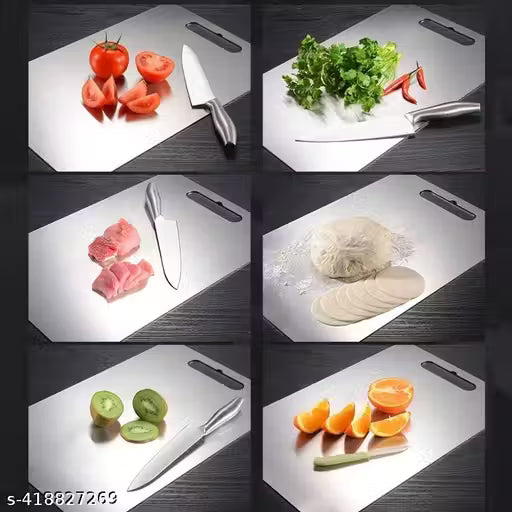 Name : Stainless Steel Chopping Board Cum Cutting Board Metal Board for Kitchen Chopping Cutting Board for Fruit Cutter, Vegetable Chopper Boards, Bread & Meats Durable Safe & Heavy Duty Stainless Steel Chopping board