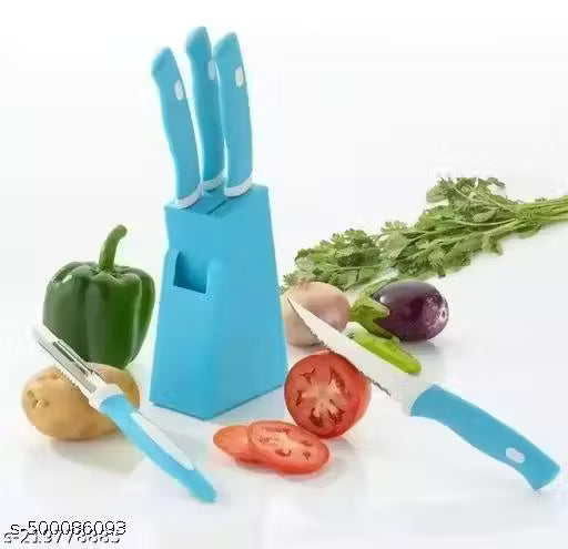 Name : Stainless Steel Knife Set with Stand|Knife Set for Kitchen , Knife , Peeler , Knife Holder for Kitchen with Knife 5-Pieces Knife Stand (Plastic) + 4 Knife + 1 Peeler
