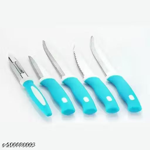 Stainless Steel Knife Set with Stand|Knife Set for Kitchen , Knife , Peeler , Knife Holder for Kitchen with Knife 5-Pieces Knife Stand (Plastic) + 4 Knife + 1 Peeler