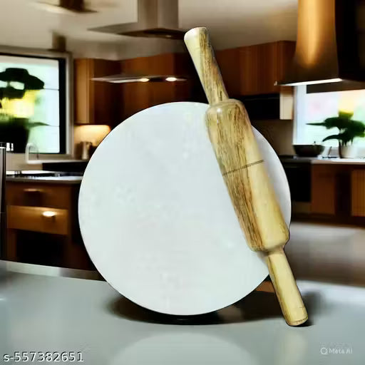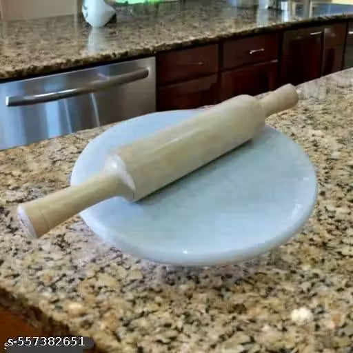 Name : White Marble Chakla with Wooden Belan/Rolling Pin Board/Roti Maker/Chakla Belan/Chapati Maker for Kitchen | Full Finished Marble Roti Maker with belan (white Chakla with belan)