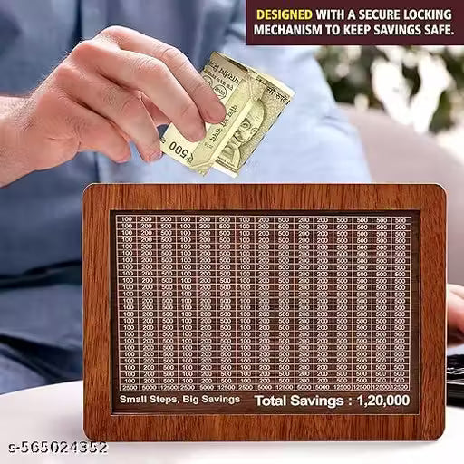 Name : Wooden Moneey Piggy Bank, Moneey Saving Boxx, Gullak with Savings Chart, 120000 Rupeess Goal Tracker, Cash Collection Bank for Kids and Adults DS-04
