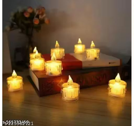 Festive glow to your space with these LED Tea Light Candles – the perfect alternative to traditional diyas. Made from premium acrylic material, these battery-operated, flameless and smokeless diyas are safe and mess-free – ideal for Diwali celebrations, weddings, poojas, parties, orhome décor.