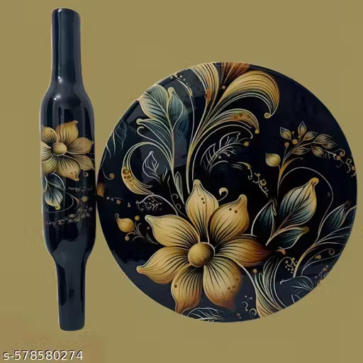 Name : Very Unique New Black and Golden Marble Chakla Belan Set – 10 Inch Chakla with 12 Inch Wooden Belan – Ergonomic Design with Knob – Printed Marble Roti Maker